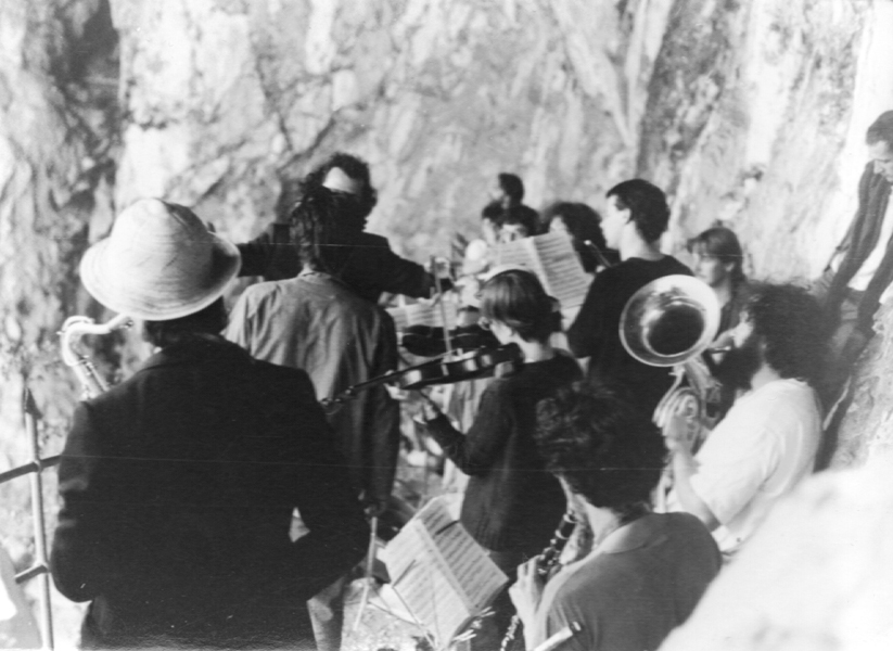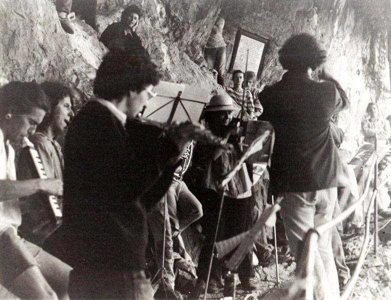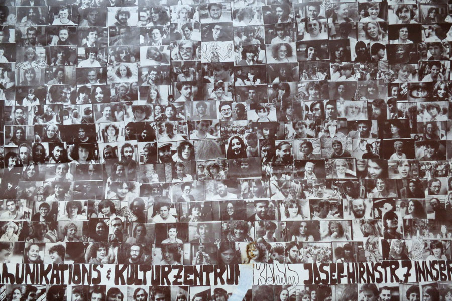 Komm Menschen Poster (1979 - leider geschnitten), Innsbrucker Improvisations Kollektiv (1981), Worship 1982-07-01, Erich Fried Lesung 1984-10-23, "komm in" im Betongarten nach der Schliessung im März 1985