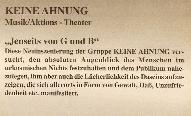 Aufführung im Utopiakeller am 31. Januar 1991 im Rahmen des "Regionalprogramms 1991"