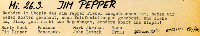 Konzert im Utopiakeller am Mittwoch, 26. März 1986