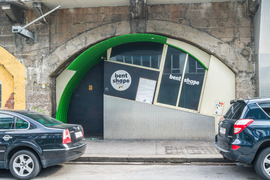 Der Bogen 13 eröffnete im Jahre 1985 und war eines der ersten Nachlokale entlang der Viaduktbögen. Die Architekt*innen Reinhardt Honold und Wolfgang Pöschl haben den Bogen, welcher bis dahin ein Malergeschäft war, neu in Szene gesetzt oder wie das Architekturforum (AUT) es beschreibt: