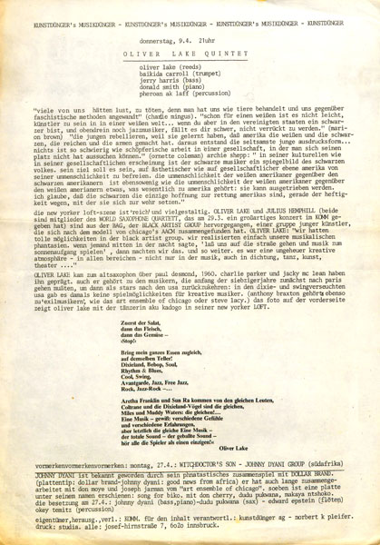 hans reichel - daf - 39 clocks - pank für tirol und vorarlberg - marionetz - normals - karies buam - tom pettings herzattacken - frau mann tage - molto brutto - ball der arbeitslosen und arbeitsscheunen - schüttelfrost benefizfescht - virgin prunes - aztec camera - milkshakes - ostinato - sternthaler - cp berger - rhodessa jones - body & the buildings - skeleton crew - funk taxi - the commercials - freedom for gassi - verdorbene jugend - uwe bolius - anti ag fest - maoam - the lo yo yo