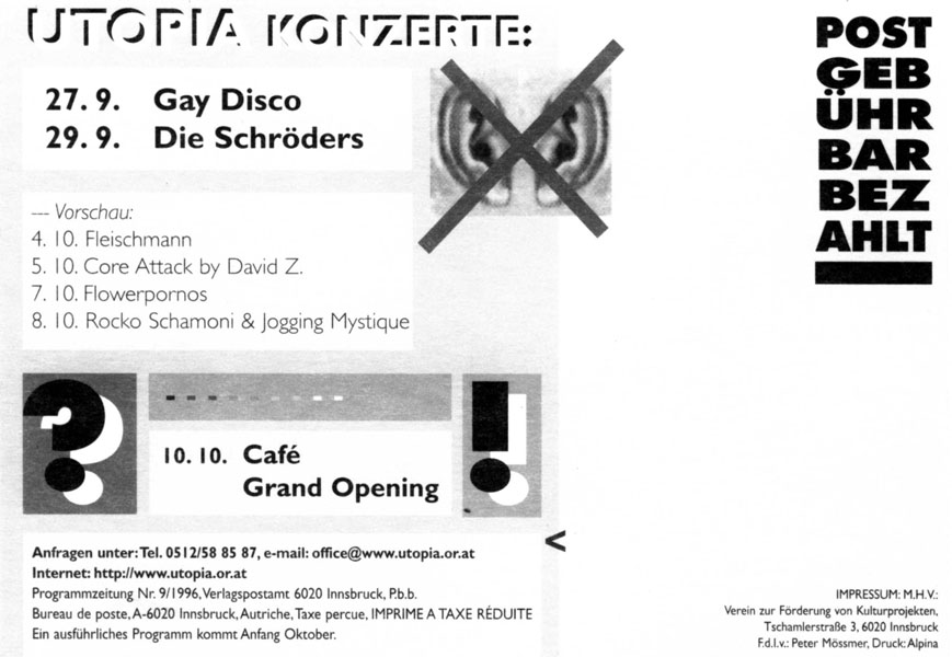 Utopia Flugzettel 1998
