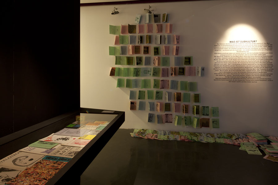 BEGLEITPROGRAMM / / Kuratorenführung Fr 30. Juni 2017 um 18.00 Uhr / / Auf den Spuren des anderen Innsbruck - Orte der Subkultur So 14. Mai, 25. Juni 2017 Beginn jeweils um 11.00 UHR Impulsführung durch die Ausstellung und Spurensuche im Stadtgebiet / / Lesung und Konzert mit Hans Platzgumer im Rahmen vom Heart of Noise Festival Sa 3. Juni 2017 um 15.00 Uhr Karten ab 14.00 Uhr an der Museumskassa erhältlich oder über das Festivalticket des Heart of Noise ( heartofnoise.at ) / / Das Amt für Chaos und Stattstruktur hat am Freitag 19. Mai, 26. Mai, 9. Juni sowie am 23. Juni 2017 von 14.00 bis 17.00 Uhr geöffnet. Hier besteht die Möglichkeit, Ihre subkulturellen Schätze dokumentieren zu lassen oder dem Amt zu Verfügung zu stellen. / / Finissage in der p.m.k Fr 30. Juni 2017 um 22.00 Uhr p.m.k, Ing. Etzel Straße/Viaduktbögen 18-19 Live: Yoshi Hampl, Atomcats, Andi Stecher Djs Al Bird Dirt und Alaska Al ( Ankündigung auf der p.m.k Website ) ÜBER DIE AUSSTELLUNG Über Jahrzehnte kämpften Initiativen und Kulturschaffende für Orte in der Stadt, Raum für alternative Realitäten, Raum für Ausdruck. 2014 als Sammlungsprojekt gestartet, gibt das Innsbrucker Subkulturarchiv erste Einblicke in diese andere Geschichte der Stadt Innsbruck. Lange galt die sogenannte Subkultur als nicht dokumentierwürdig und sammlungswert. Doch Subkultur war und ist stets gesellschaftsbildend und wegweisend für einen sich permanent verändernden Zugang zu junger Kultur. In dieser Ausstellung wird Innsbrucks alternative Geschichte anhand von Orten und dort tätigen Protagonist_innen erzählt und in Zusammenhang mit der kulturfeindlichen Stimmung des „Heiligen Landes Tirol“ abgehandelt. Ausgehend von verschiedenen Musikszenen, ladet die Ausstellung zu einem Streifzug durch verschiedene Orte, Szenen und Musiker_innen ein. Es eröffnet Blickwinkel eines anderen Innsbrucks und erinnert an fast vergessene Orte, wie dem Kennedyhaus, dem Komm, dem Akt, dem Haus am Haven oder dem Utopia bis hin zu den frühen Jahren immer noch bestehender Zentren der Kultur wie dem Treibhaus, der Workstation oder dem Z6. Es ist eine Reise in die Vergangenheit mit Relevanz in die Gegenwart der Subkultur Innsbrucks, die letztendlich auch dafür verantwortlich ist, dass die Stadt heute so ist wie sie ist. Interview mit Hans Platzgumer in der Tiroler Tageszeitung Ankündigung der Ausstellung in "Innsbruck informiert" Ankündigung der Ausstellung in der Tiroler Tageszeitung |